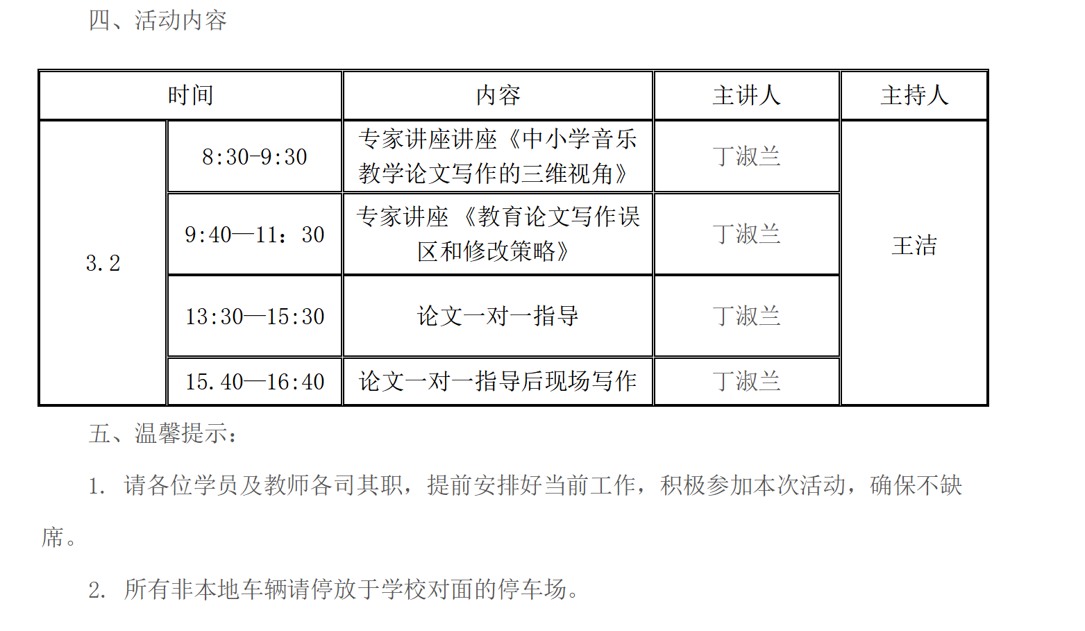 2. 所有非本地车辆请停放于学校对面的停车场。