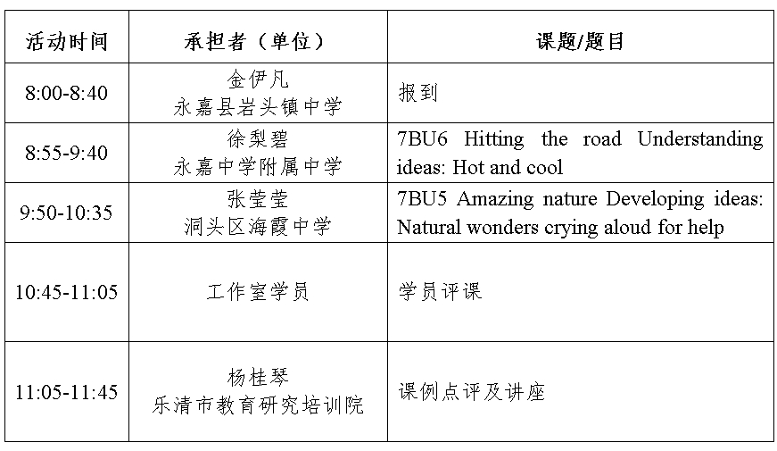 关于举行温州市初中英语杨桂琴“名师送教”工作室第16次活动的通知